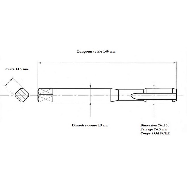Taraud pas métrique fin 26x150 GAUCHE